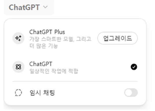 이렇게 유료 가입자는 GPT-4, GPT-4o, GPT-4O mini의 세가지 모델 중에서 선택하도록 변경되었다.