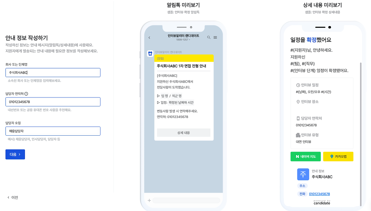 면접자와 연락을할 수 있도록 해줍니다.