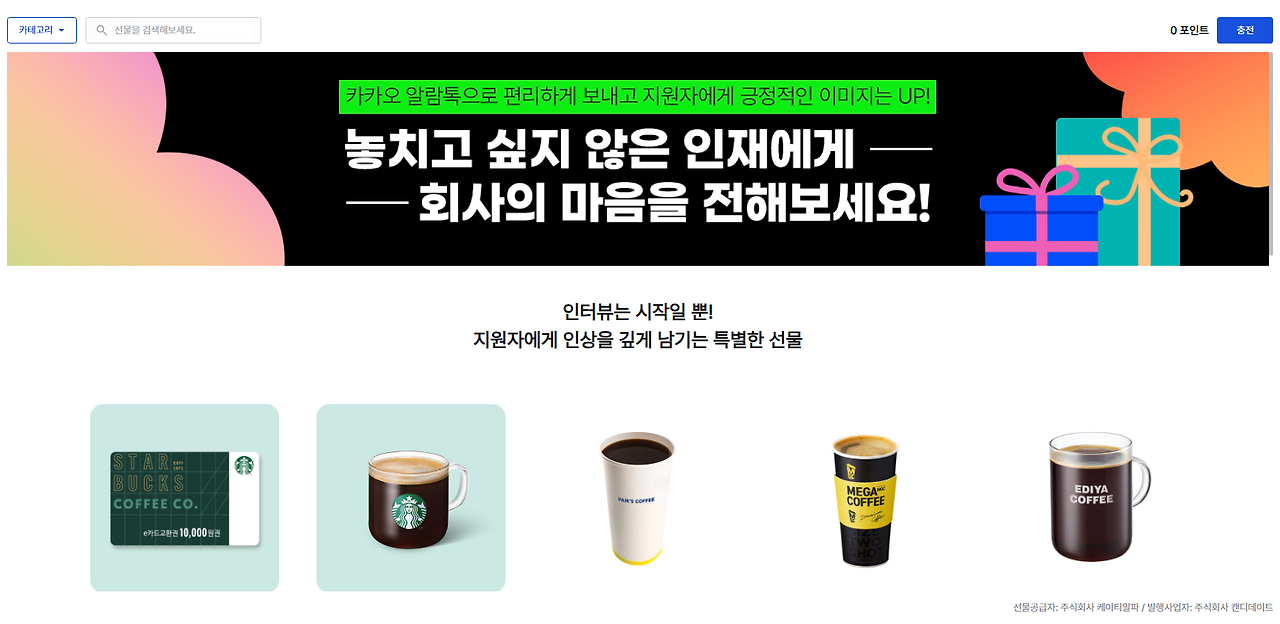 기프티콘으로 지급할 수 있는 시스템이 준비되어 있습니다.