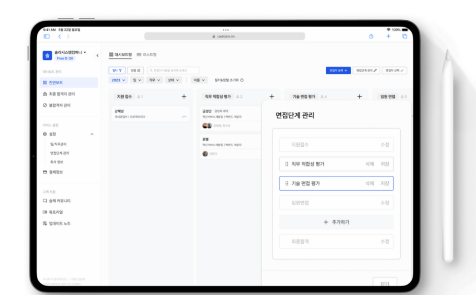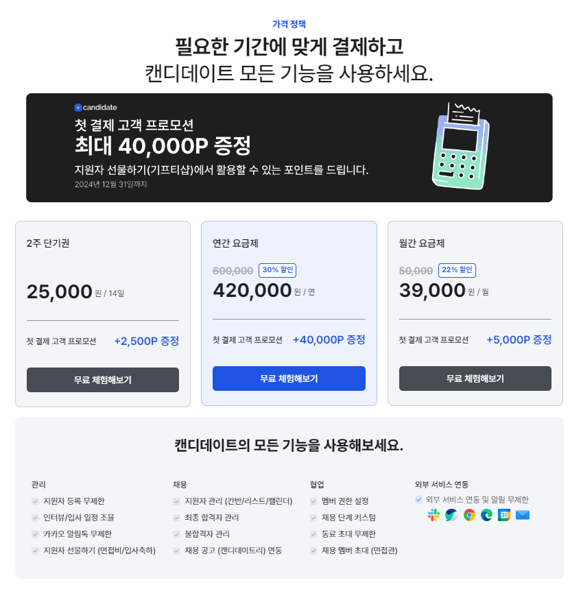 캔디데이트 서비스를 도입해서 사용하고 있습니다.
