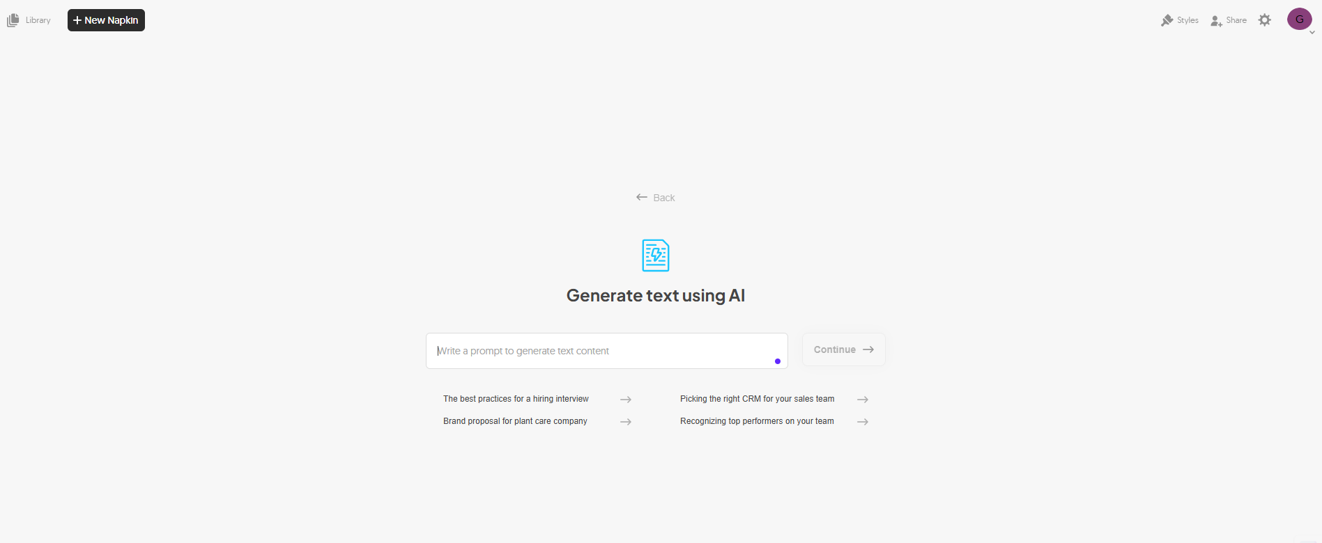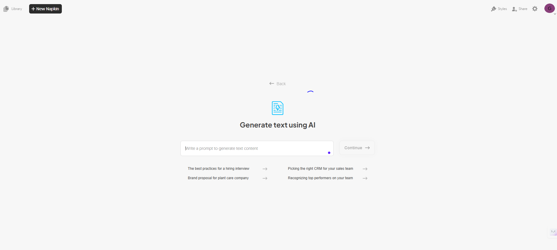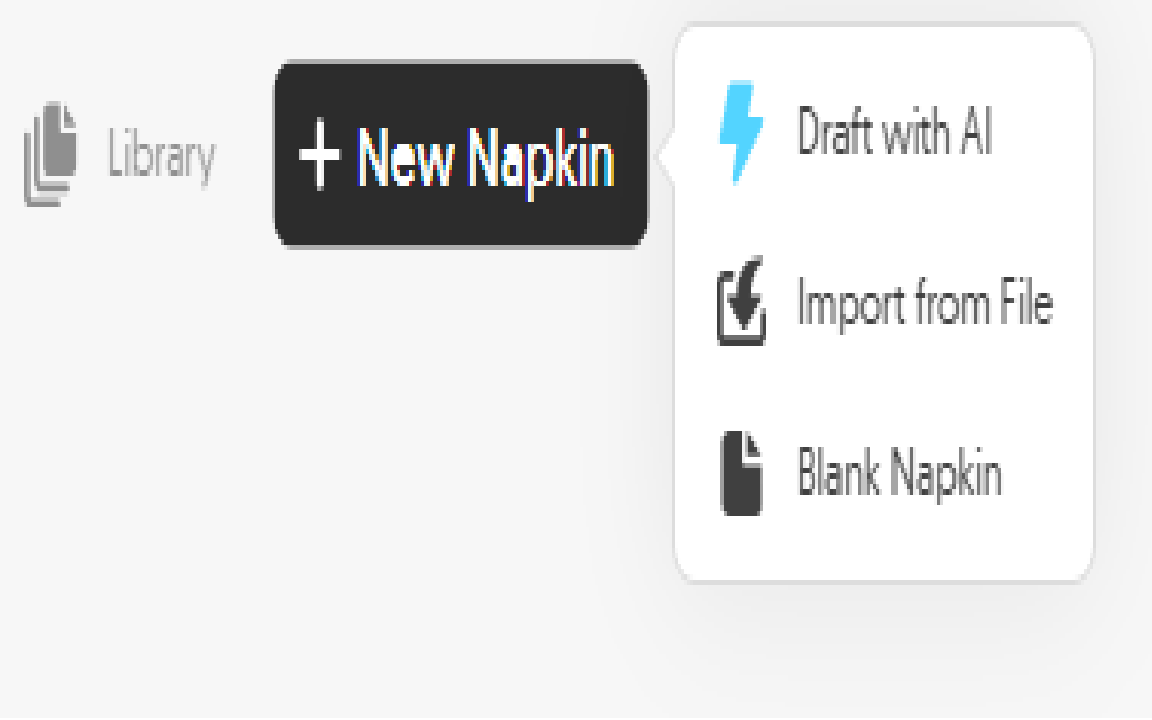좌측 상단의 '+New Napkin'을 선택하면 냅킨을 시작하는 방법을 선택할 수 있습니다.