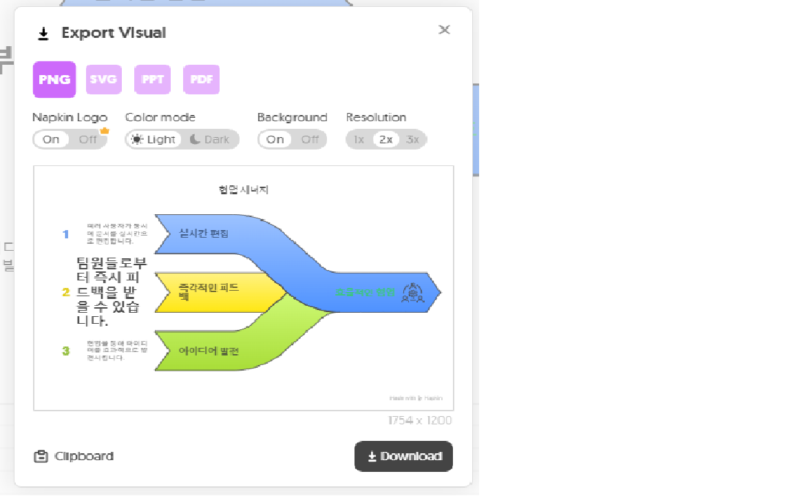 PNG, PDF, SVG 등 다양한 파일로 저장 가능합니다.