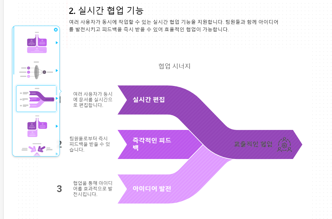 복잡한 생각도 이렇게 정리가 되니까 발표 내용을 만들어가면서 생성할 수도 있습니다.
