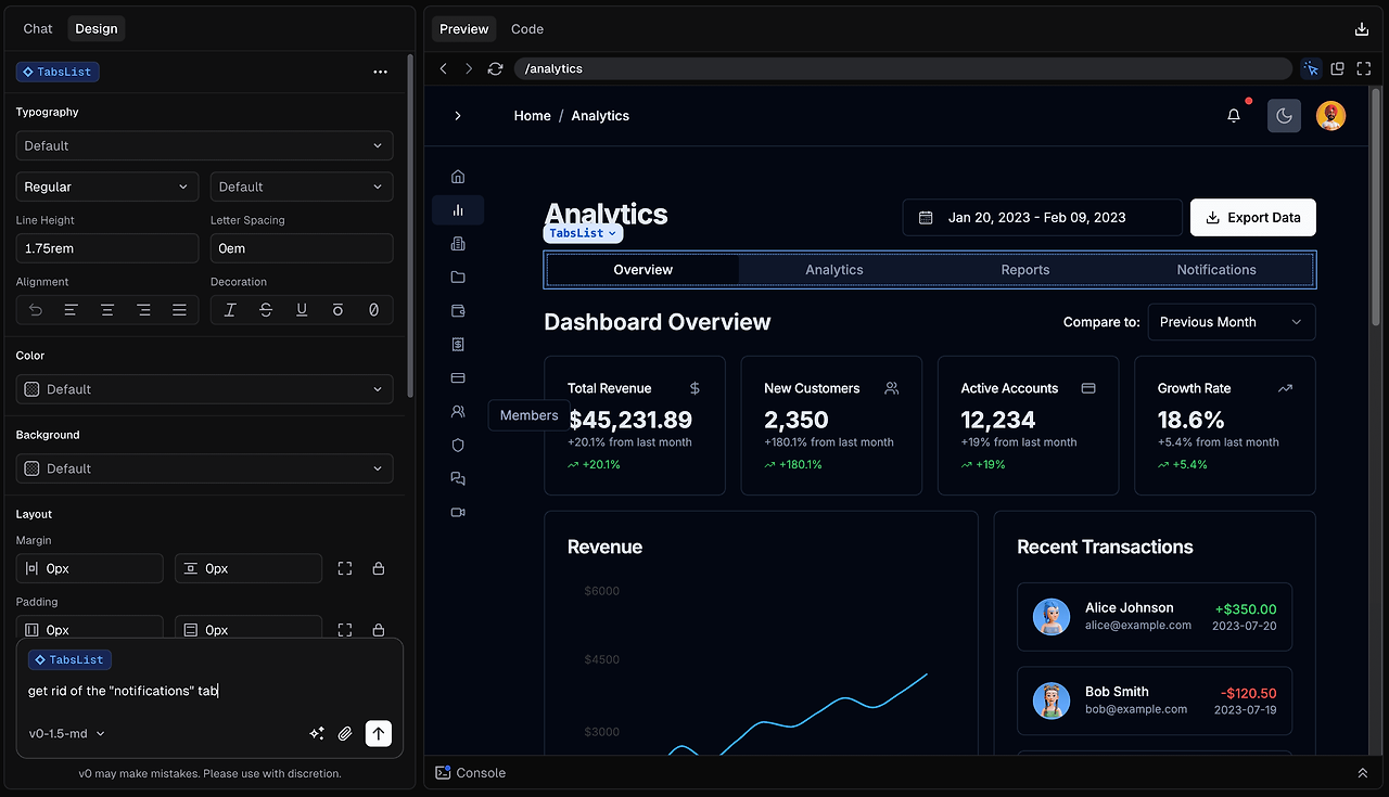 이 한 줄만으로도 v0.app이 만드는 UI 구조가 크게 달라진다.