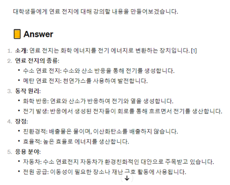 처음에 예시로 들었던 연료전지에 대한 설명은 어떻게 차이가 날지 확인해보면 다음과 같다.