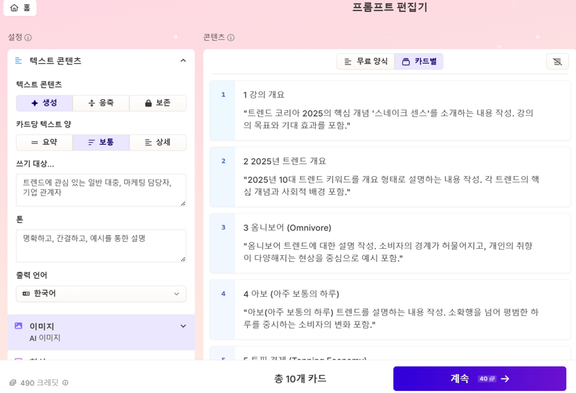 장표별 주요 내용을 요약해 준것을 입력하고 생성 요청을 하기만 하면 된다.