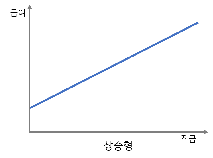예를 들어 혼합형으로 체증형과 체감형으로 동시에 사용할 수 있습니다. 신입 초임을 높게 설정하여 신입직원의 유입을 촉진할 수 있습니다. 그리고 중간 직급의 임금 상승률은 낮게 설정하여 임금에 대한 부담을 줄이고 상위 직급에서는 다시 임금 상승률을 높여 직급 상승에 대한 동기부여를 하는 방법이 있습니다.