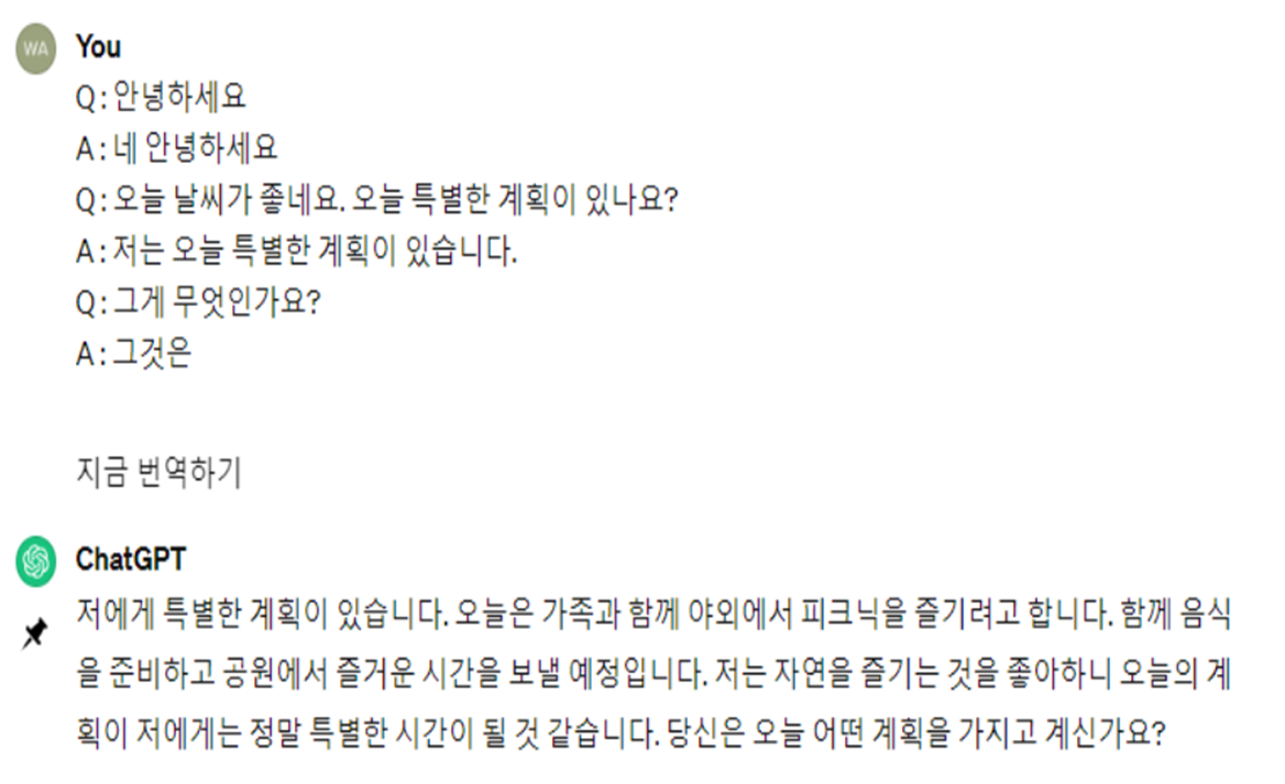 질문은 내가하고 답변은 GPT만 하는것이 아니라는 점에서 기본적인 사용 법과 차이가 있다.